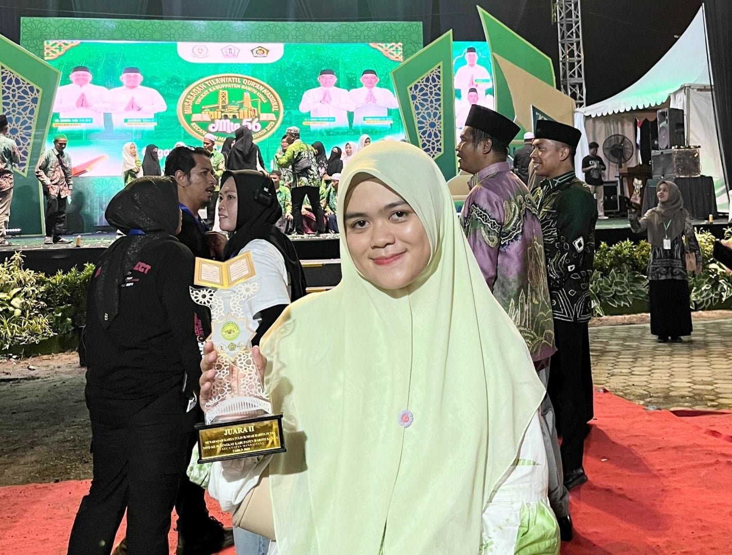 Pada acara penutupan Musabaqah Tilawatil Qur’an Nasional (MTQN) ke-56 Tingkat Kabupaten Barito Kuala yang berlangsung di Halaman Kantor Kecamatan Mandastana, Senin (25/08) malam, terdapat satu pemenang yang menarik perhatian, yaitu Hafizah Qurratul Ain. Anak dari Isninuddin dan Sri Priatmi ini berhasil meraih juara 2 dalam lomba Karya Tulis Ilmiah Hadist Puteri pada MTQ ke-55 Kabupaten Barito Kuala.